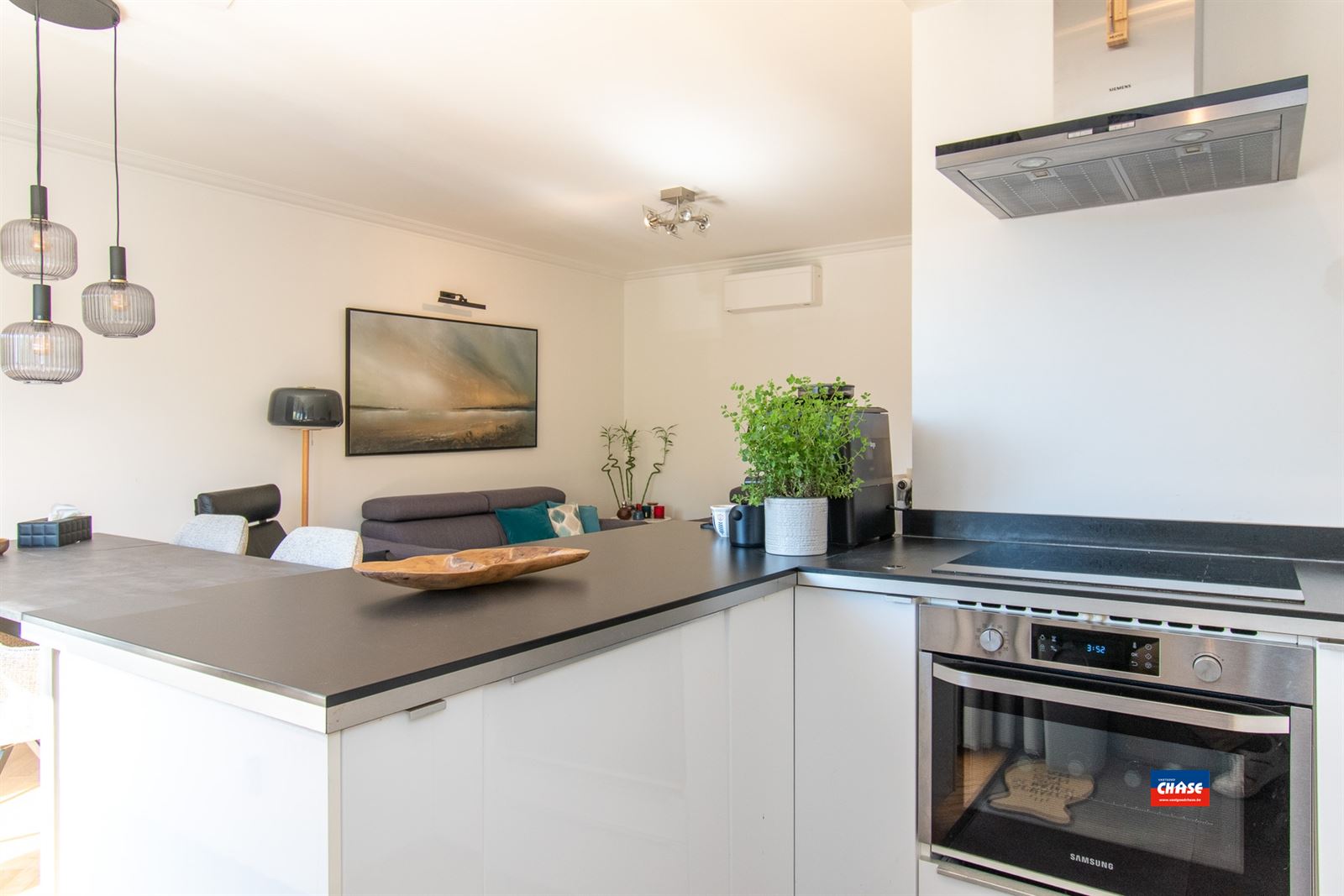 ·De woonkamer en de slaapkamers zijn uitgerust met aircotoestellen (warm en koud) en in de woonkamer kan je zonnescreens terugvinden.