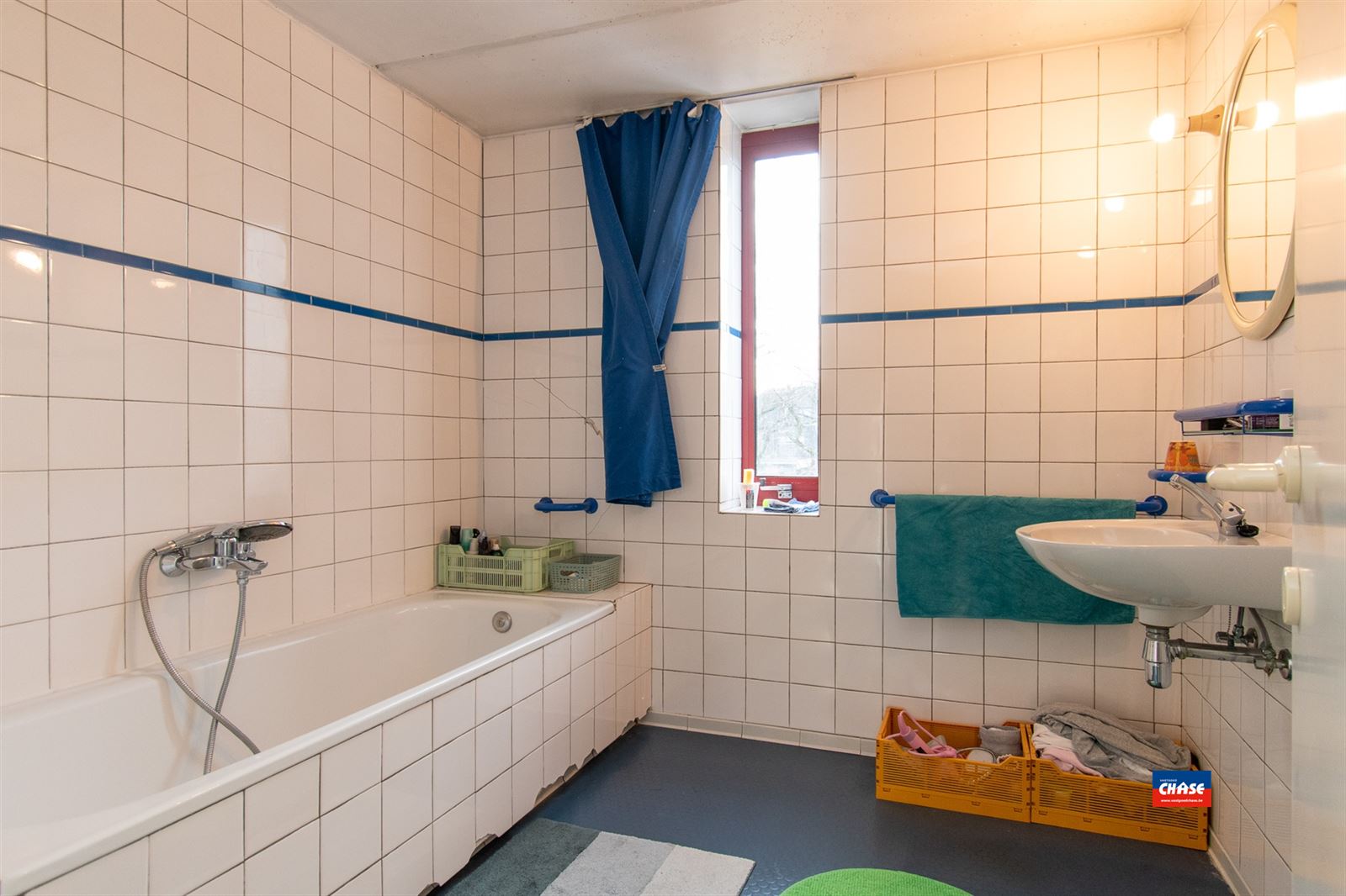 De aansluitende ruimte is ingericht als wasplaats, waar je ook de meters kan terugvinden en de toegang tot de tuin.